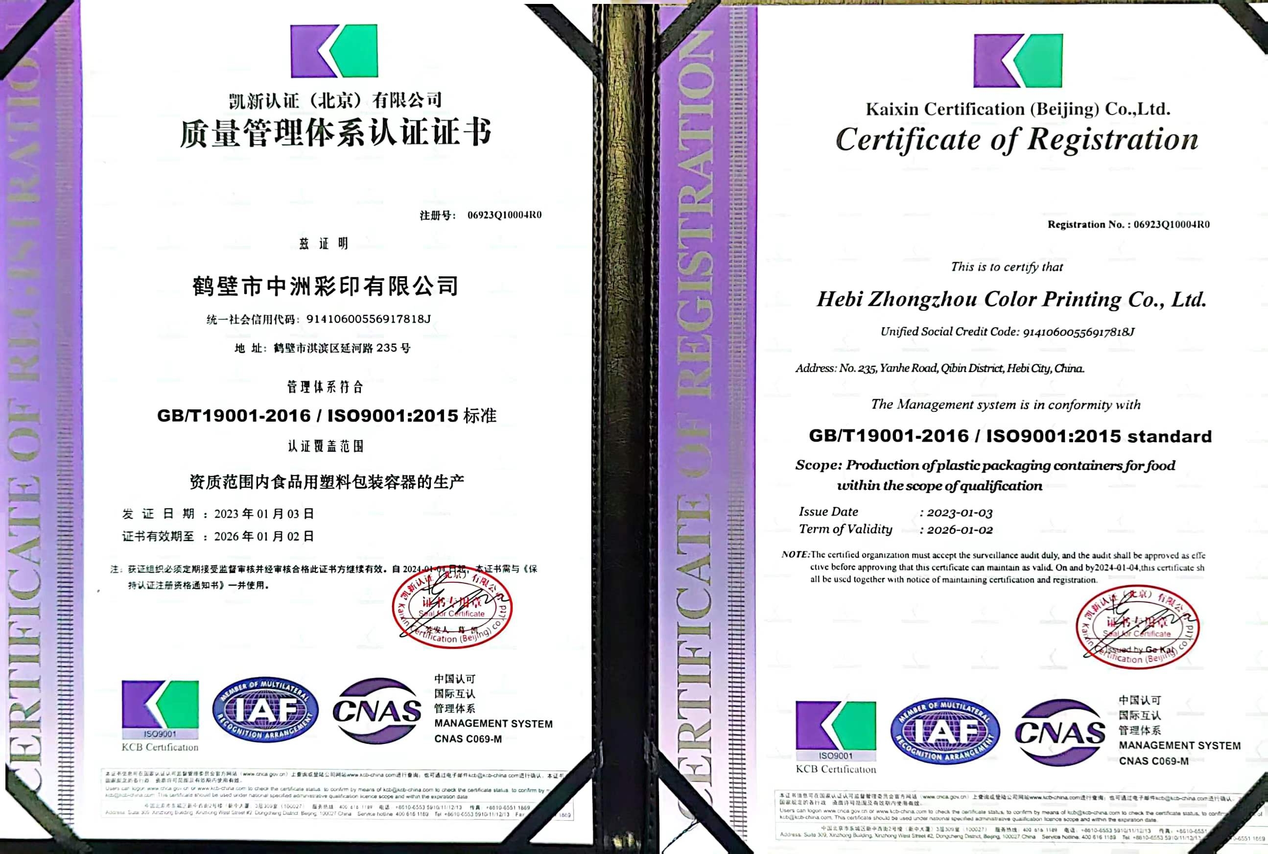 鶴壁市中洲彩印有限公司成立于2010年,位于鶴壁市開發(fā)區(qū)延河路235號,是一家集創(chuàng)意設計、制版、印刷、復合、制袋為一體的塑料軟包裝高新技術企業(yè)。公司占地42畝,建設有無塵凈化車間8000平方米。現(xiàn)擁有中、高速電腦對版印刷機3臺,干式復合機1臺,無溶劑復合機3臺,制袋機20臺,自有設計工作室,總投資5000余萬元。公司現(xiàn)有員工120余名,其中專業(yè)技術人員50人,年產(chǎn)值1.2億元。公司于2020年1月份通過了ISO9001質(zhì)量體系認證,是目前豫北地區(qū)較大的塑料軟包裝制作企業(yè)。 →
